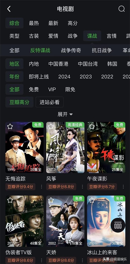 第3名,《午夜谍影》,豆瓣评分8.7分。该剧是一部由纪小黑执导,张继波、兰振波等主演的电视剧。该剧主要讲述1945年打击日本女间谍阻止“白狼会”在中国的活动。