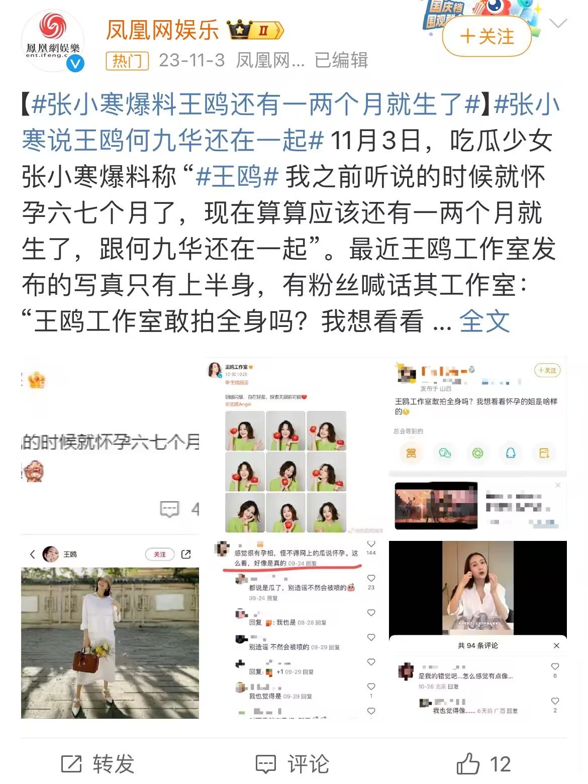 不过就在前两年,一个叫张小寒的狗仔曝出,王鸥和何九华一直在一起,并且还有一两个月就要生了。