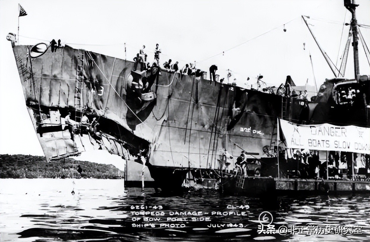 科隆班加拉岛海战中受到鱼雷攻击受损的火奴鲁鲁号与圣路易斯号