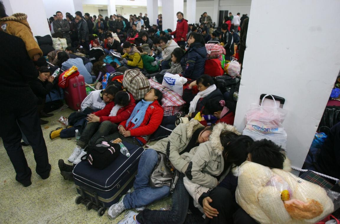 夜晚降临,大多数人为了能够得到消息尽早赶回家,都不愿意去找外面的宾馆住一宿,他们就找一个毯子往地上一铺,靠着自己的行李箱,将就着在火车站里过一夜,然而照做的人越来越多,火车站很快就连躺的空间都没有了,有些人只能挤在狭小的地方坐着睡,他们满怀期待,希望明天一醒来就能收到火车到来的好消息,可事实真的如此么?