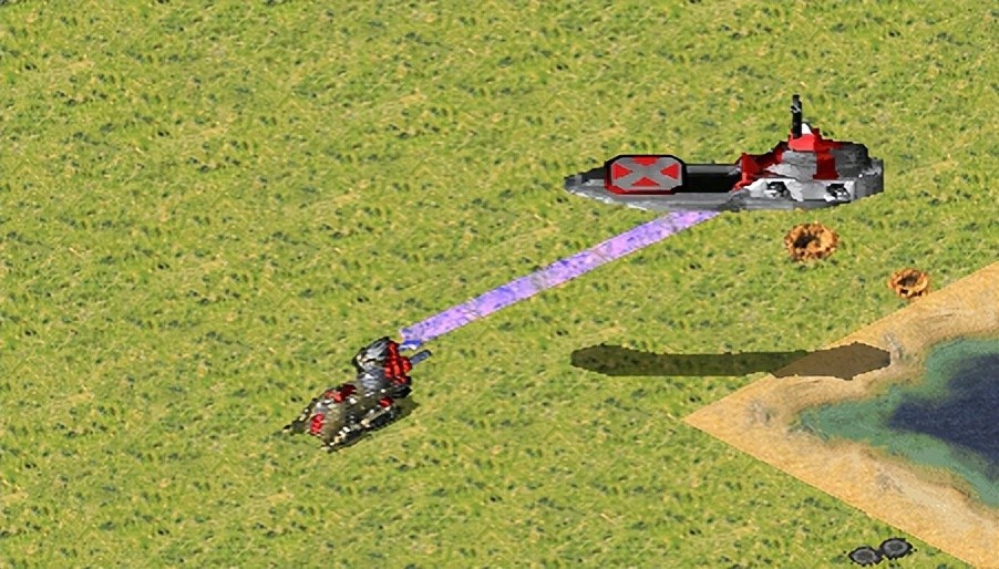 ★更有效的攻击建筑和机械单位,看到敌军的坦克在他建筑的后面,或侧面.那么就把磁电坦克移动到适合的位置,把他升高升在建筑上面时按S键或移动磁电坦克,那么被升高的就砸在敌人建筑上面了.坦克和建筑一起爆.同时秒两个单位.这就是磁电坦克可怕的地方之一.或者同样道理坦克砸在坦克上.必要时~被升高的还可以是自己的红命坦克.