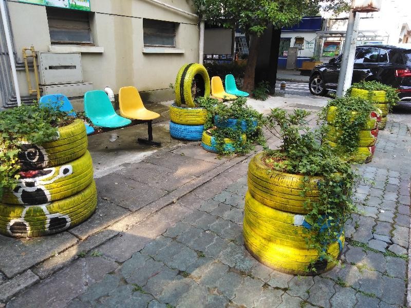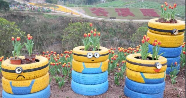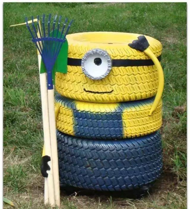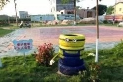利用轮胎创作各种卡通造型,不仅可以种花也很吸引小朋友。