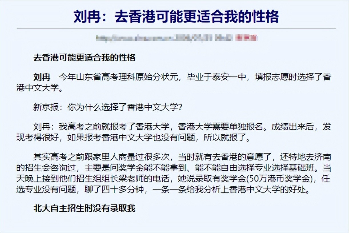 2006年,一位名叫刘冉的女孩成为了山东省的高考状元。