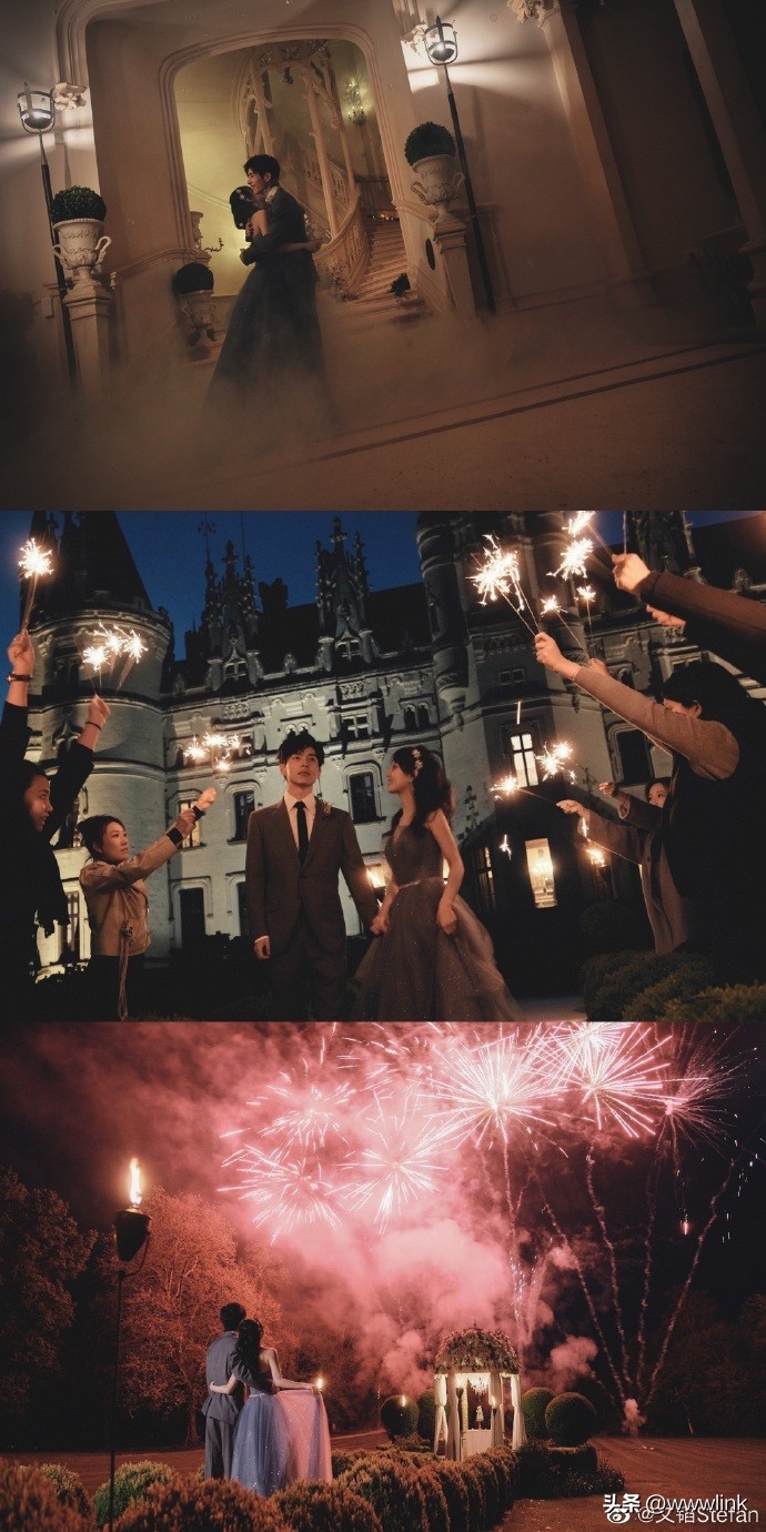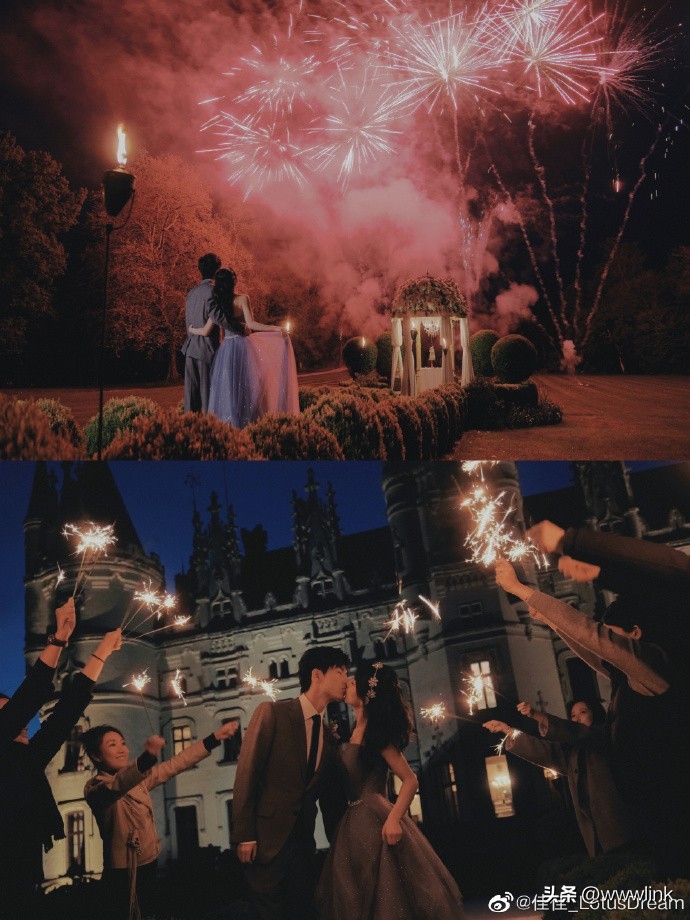 两人的婚礼全是浪漫元素集为一体,在古堡里相拥着跳舞,在众人手举仙女棒的祝福下前行,并肩看盛大的烟火秀,这不就是妥妥的偶像剧剧情吗?