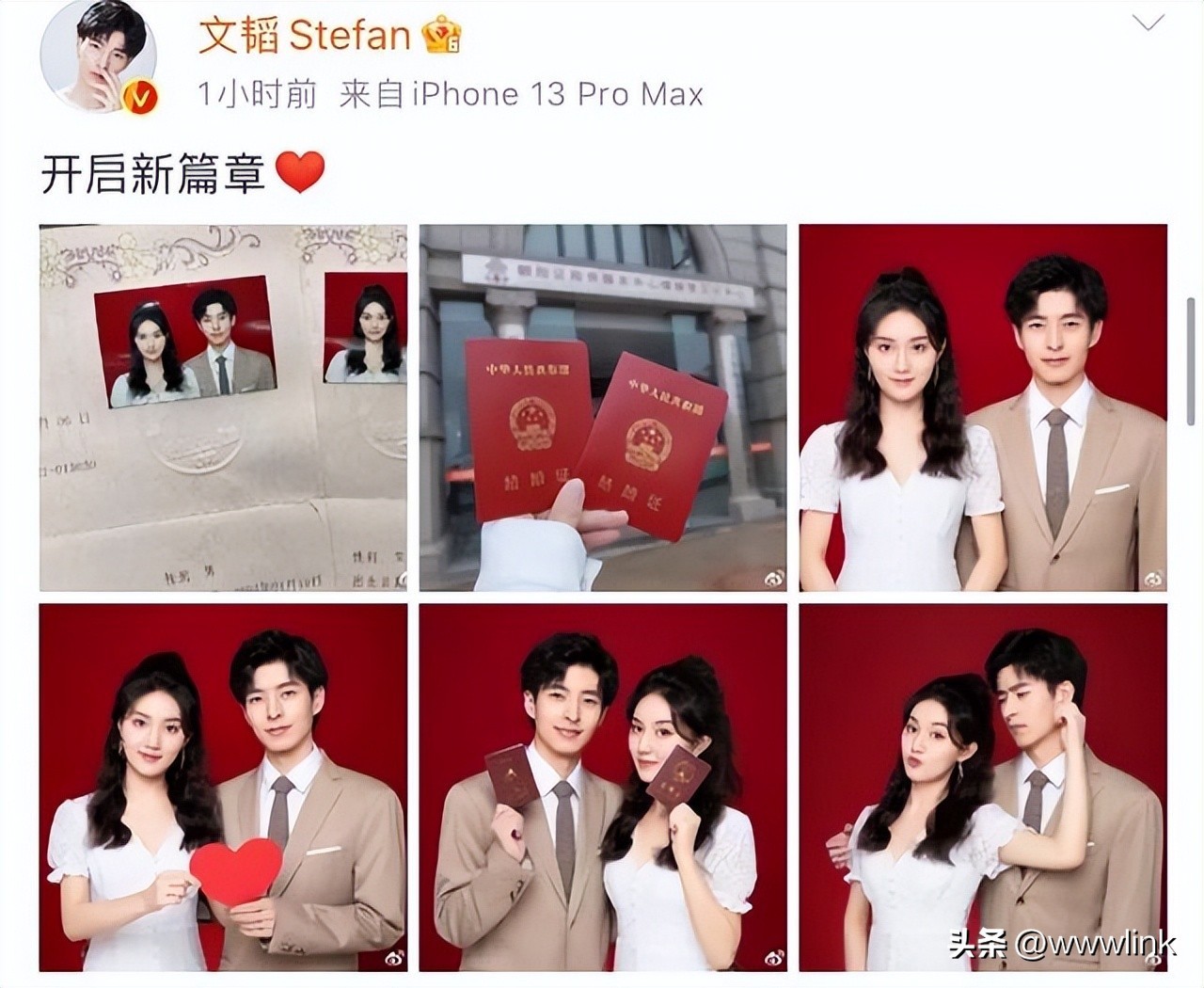 北大校草郭文韬在微博上晒出婚礼照片,空降微博热搜第一。