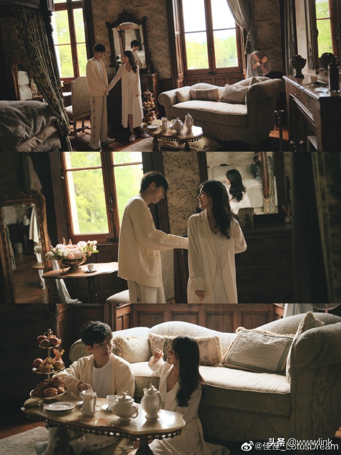 照片中,两人穿着悠闲衣服,对视聊天,半躺在沙发上观赏窗外良辰美景,真是神仙眷侣一般的生活啊!