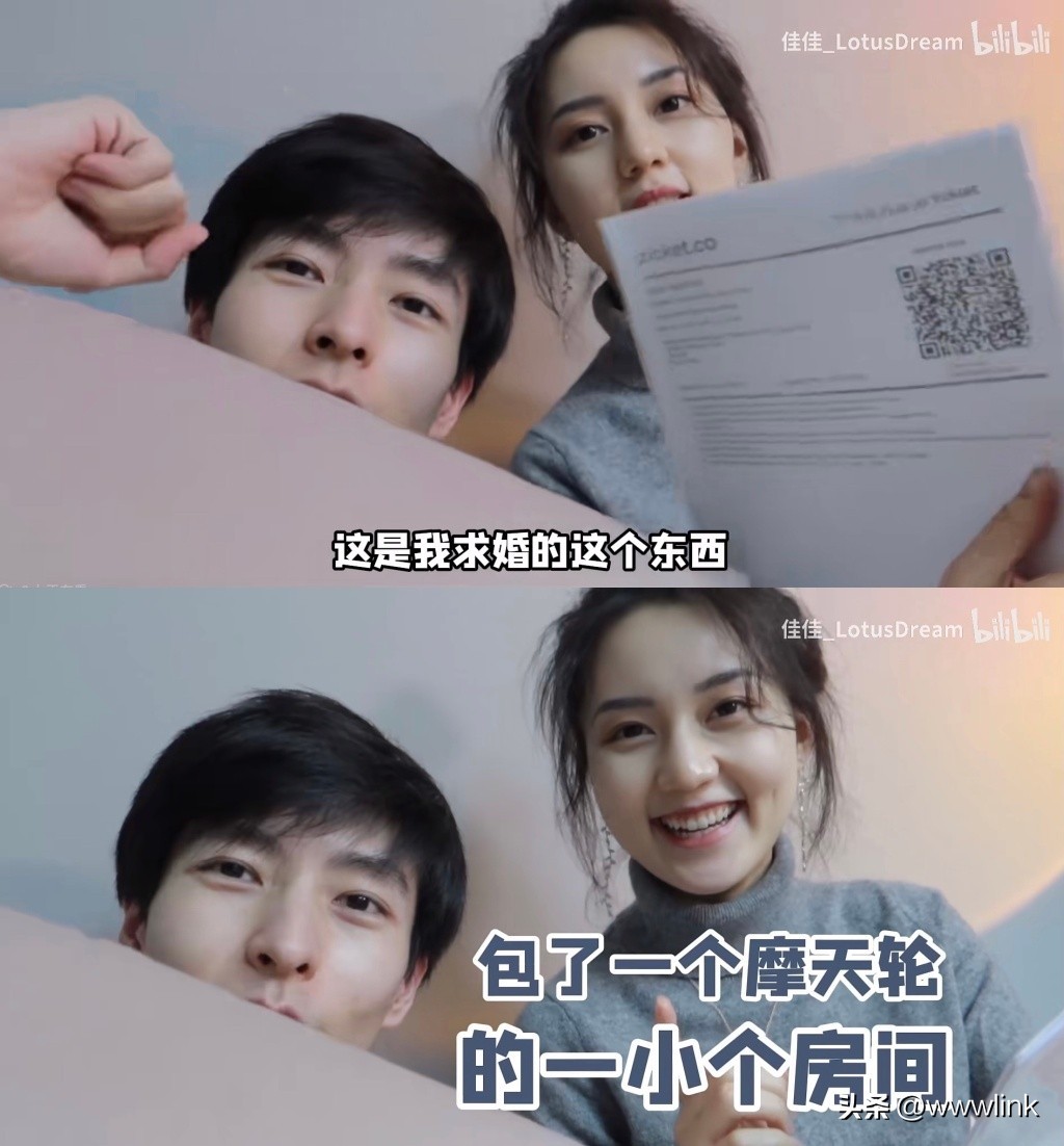 照片里两人坐在落地窗前,郭文韬一身西装,佳佳则穿着雪白婚纱,共享鲜花和烛光晚餐。