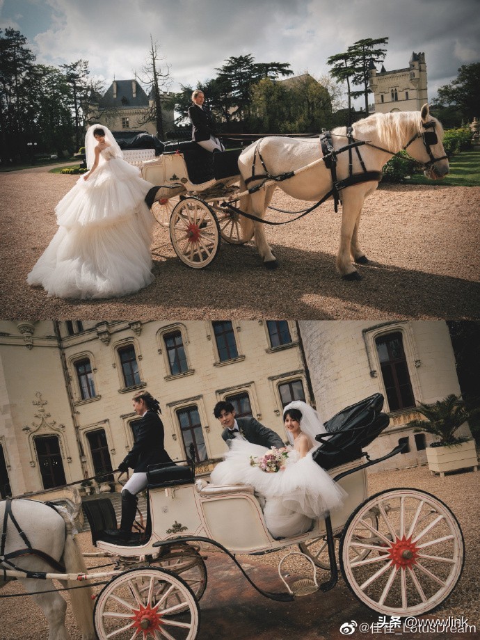 在浪漫的古堡前,佳佳坐上精心布置好的马车,西式婚礼的庄重和浪漫风格宛如童话书里的童话爱情故事。