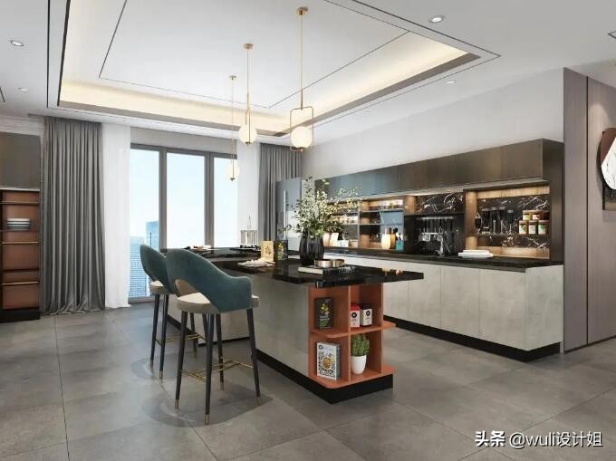 自带BlingBling的华丽属性,中岛位置的独立吧台,还需预留充足的活动空间,只有大户型才可驾驭,不仅可增加收纳空间,更是营造了令人向往的生活氛围。