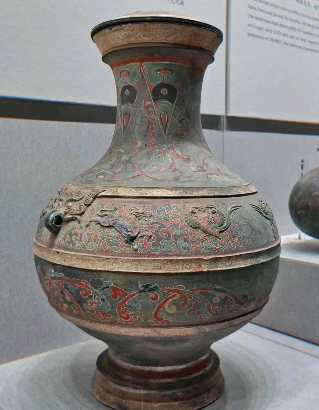 【西汉凸雕龙凤纹彩绘陶壶 故宫博物院】