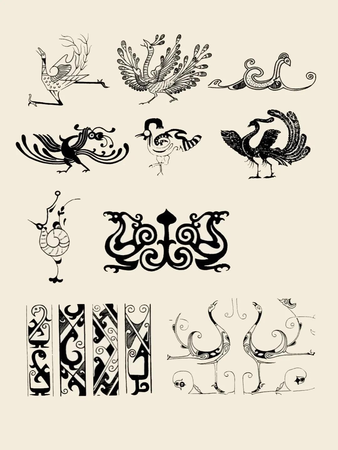 最早的凤鸟形象可以追溯到新石器时代的彩陶上,那些简单的鸟形图案被认为是凤纹的雏形。