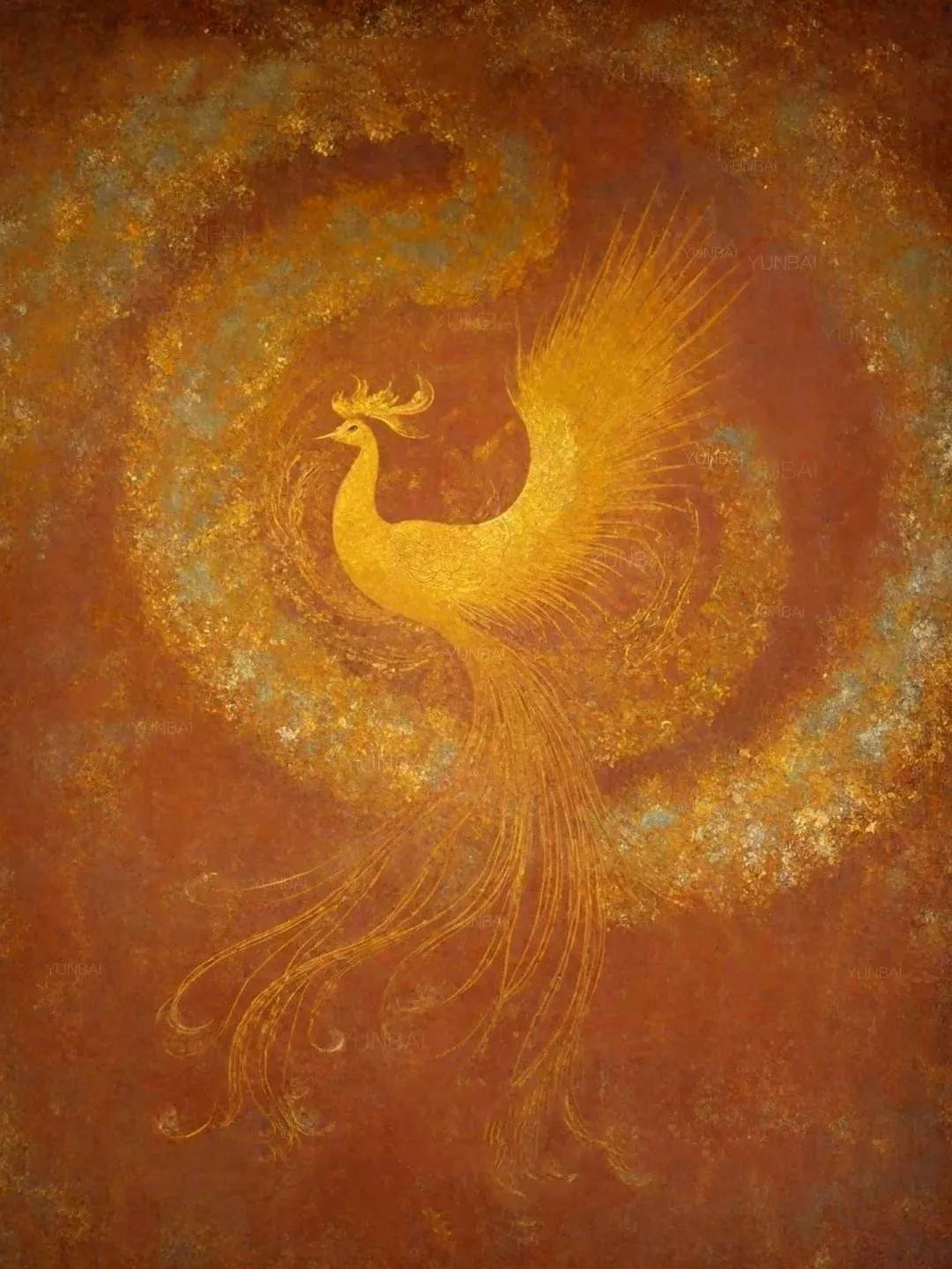 这段描述为我们勾勒出一只头顶华冠、羽披百眼、五色斑斓的神秘凤凰,它不仅是百鸟之王,更是传说中带来祥和与安宁的瑞鸟。