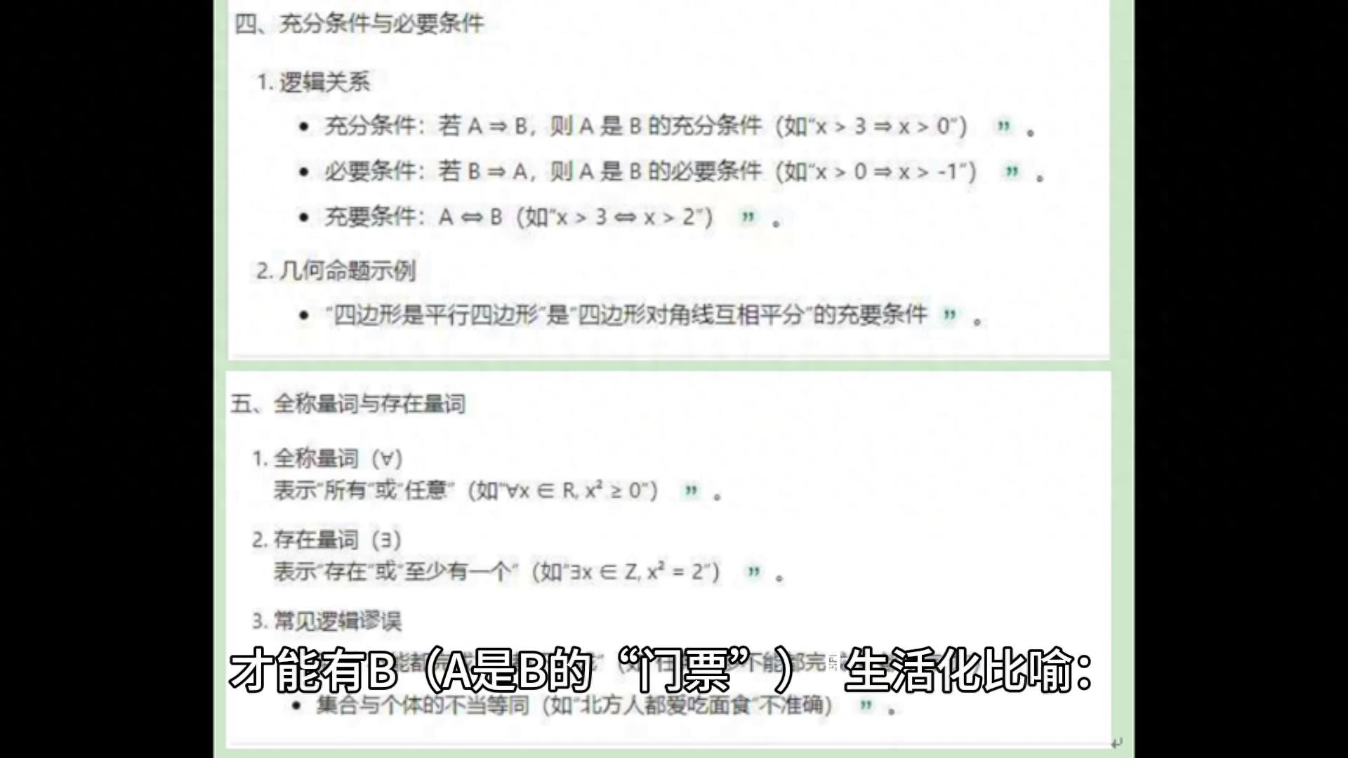→2.必要条件:B→A相当于只有有了A才能有B(A是B的"门票")。生活化比喻:"下雨(A)"是"地面湿(B)"的充分条件(但地面湿不一定是下雨导致的)。