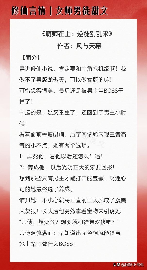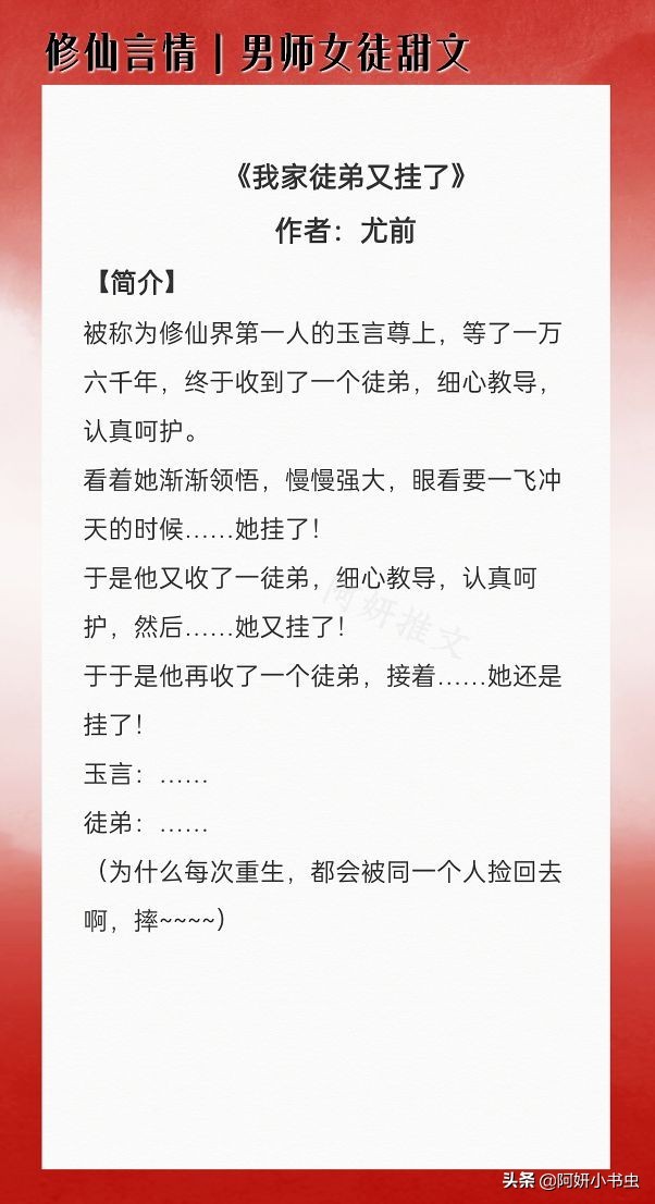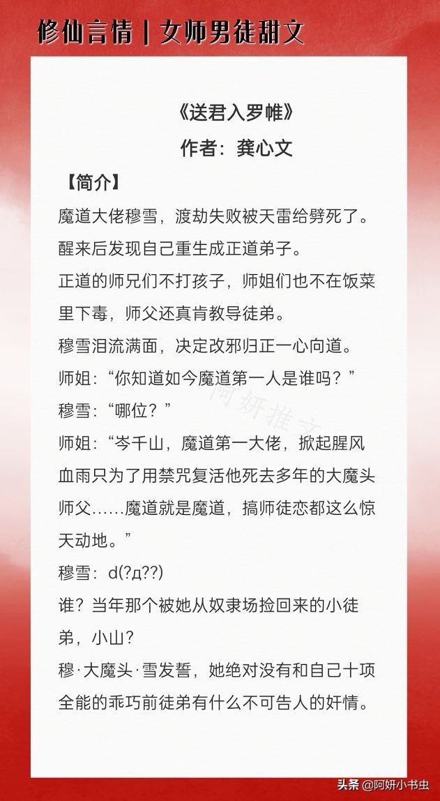 今天推荐的是:3本修仙师徒文!看强大师尊养成系恋人徒弟。腹黑,变态的男徒弟一步步攻略师尊,占有欲超强可甜可盐。徒弟们撒娇卖萌一心为我,又撩又会宠人。男女主共同成长,相知相恋的故事甜蜜无比。愉快的修仙过程和欢乐的打怪中秀着恩爱的故事。轻松不虐,甜宠与热血并行!情节刻画不拖沓,剧情很有层次,让人读来欲罢不能,看着十分轻松,很是吸引人,强推!!