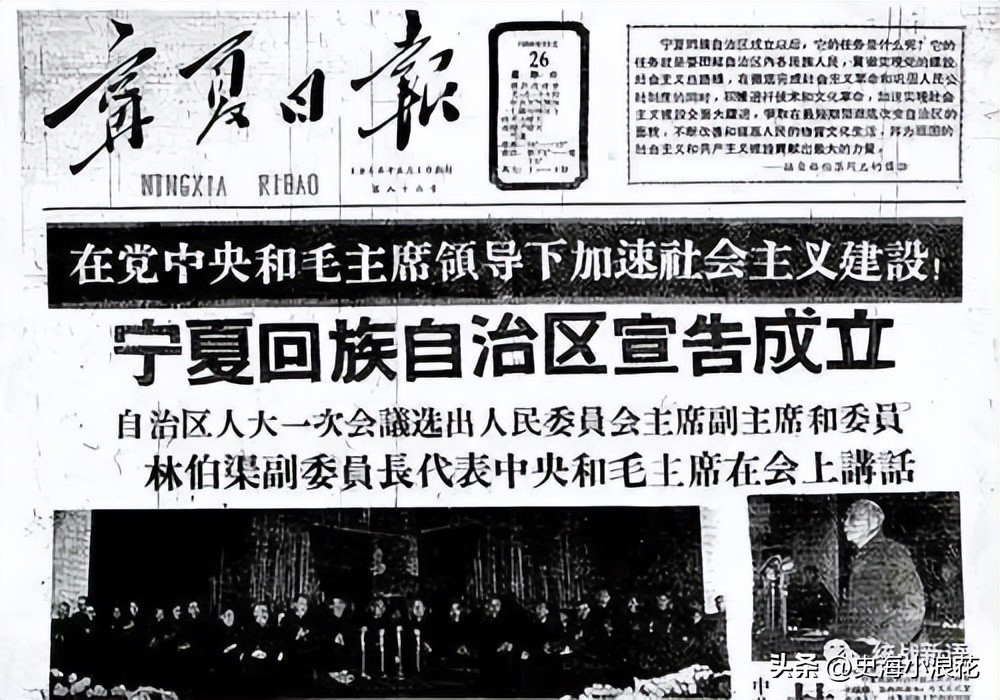 解放以后,虽然已经成立了4个回族自治州(临夏、吴忠、固原、昌吉)和10个回族自治县,但是不成立一个相当于省一级的自治地方,是不能同回族在祖国大家庭中的地位相适应的。”