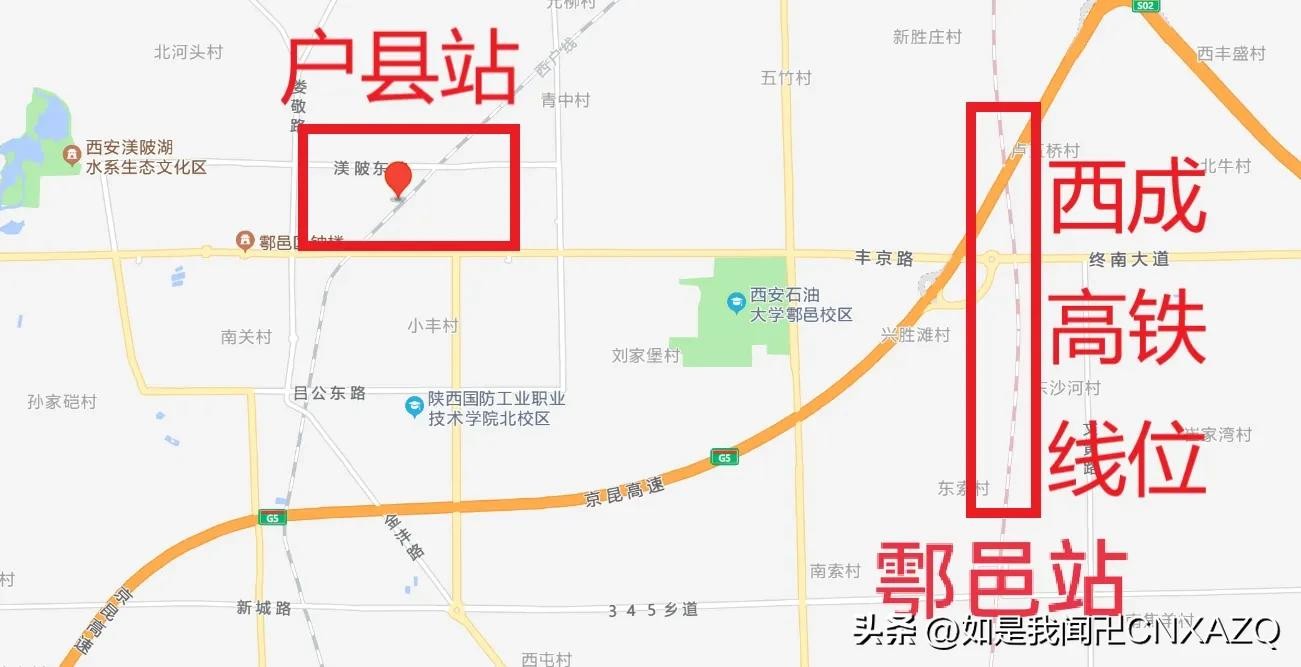 西户铁路户县站和西成高铁鄠邑站位置图