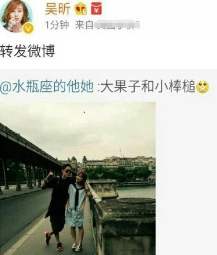 2016年,吴昕冷不丁地自曝了一张和一位男士的合影,疑似恋情曝光。