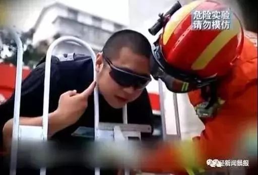 志愿者在专业人士的保护下,将脖子卡在栏杆缝隙中,然后慢慢地缩小缝隙,栏杆从15厘米逐渐缩减到9厘米,这时志愿者感觉眼前突然黑了一下,突然手也麻了。