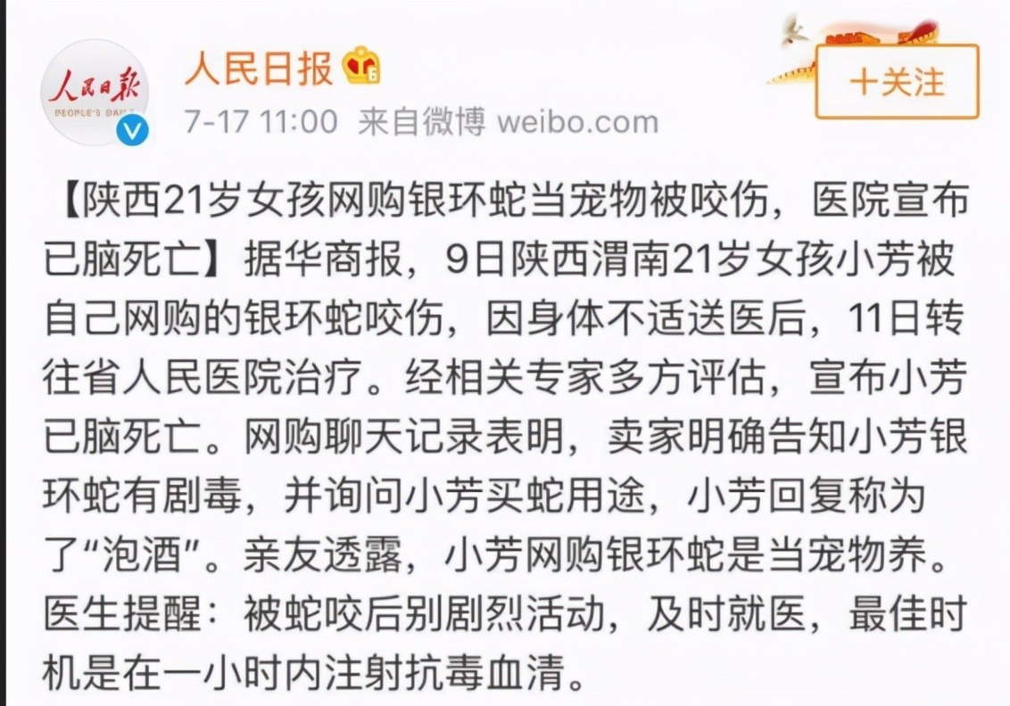 就这样一个年仅21岁的花季年龄就因为好奇被蛇咬一口而凋零了。