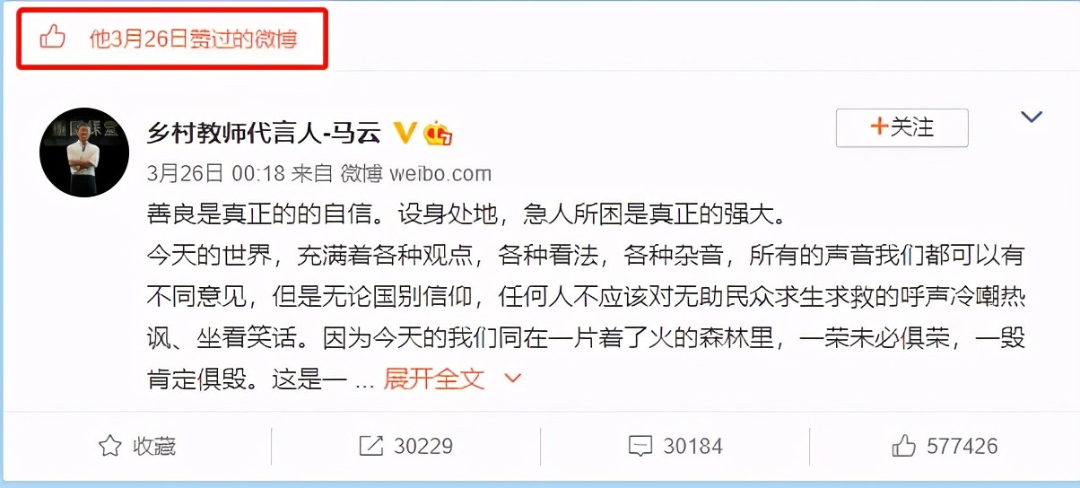 还在社交平台上频繁点赞马爸爸的动态,