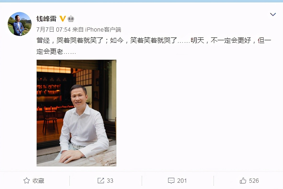 他身着马爸爸家品牌短袖,在微博上发文“梦想总要有的,万一实现了呢?”,然后征战美国,见证上市,身价水涨船高。