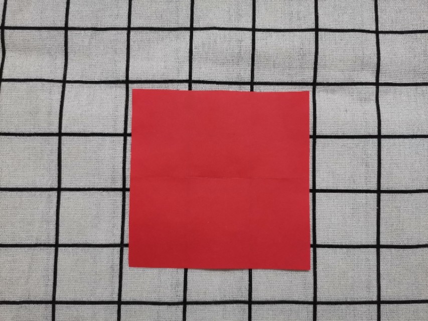 2.将正方形红纸沿中线对折