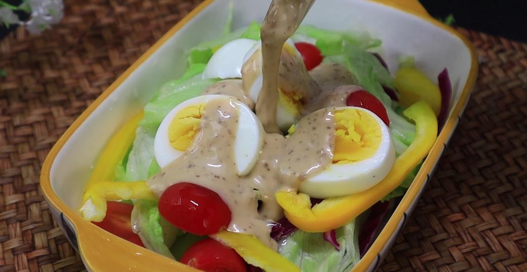 5、最后淋入自己喜欢的沙拉酱就可以了。