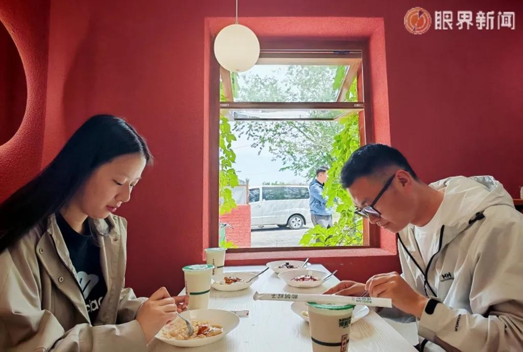 “这个店也是在网上刷到的,没想到在这样一个大院里藏着这样的宝藏小店!”阮仁梅说,她不想匆忙路过乌鲁木齐,希望在这里看看老建筑、逛逛特色小店、拍几张“烟火气”的大片。博斯坎酸奶粽子店不仅有新疆特色美食,还有砖红色的外墙,店里布置了复古窗、种了爬山虎墙,拍起照来“很有一套”。