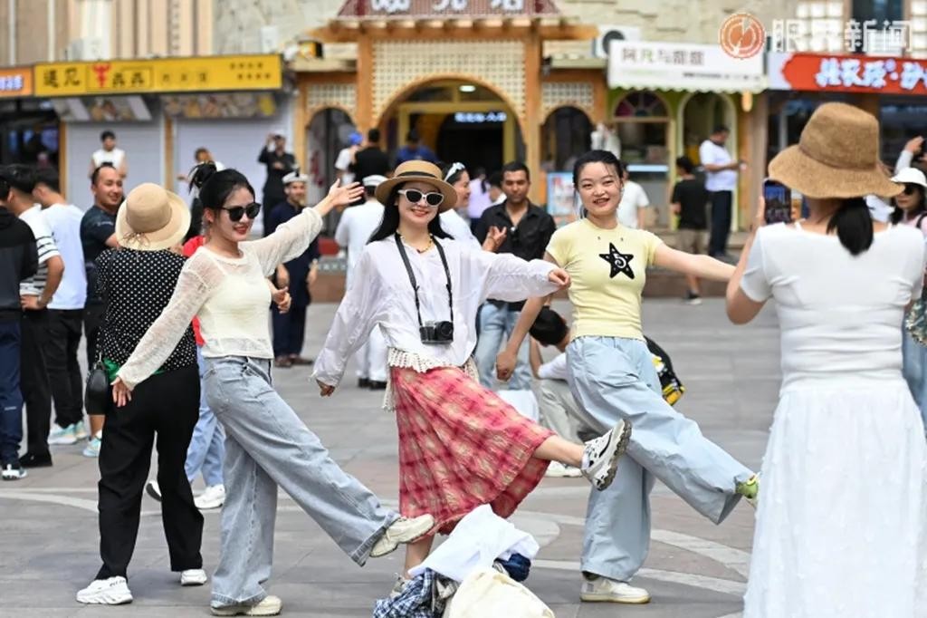 6月6日,游客在大巴扎步行街打卡拍照。资料图片