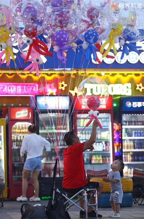 海岛与浪美好生活创意园,小朋友被眼前的气球吸引。资料图片