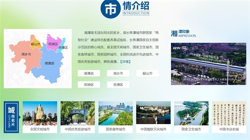 城市发展定位和文化旅游方面,湘潭紧扣“国家重要智能制造集聚区、中部科创发展示范区、内陆改革开放先行区、国家城乡融合发展试验区、具有国际影响力的红色旅游目的地”发展定位,现代商贸物流、文化旅游、高端服务业方兴未艾,“三山两水一湾一园”——韶山、昭山、隐山、水府旅游区、湘江旅游带(尤其是千里湘江第一湾)、窑湾文化旅游街区、盘龙大观园等旅游景区建设加快推进,已经是全国文明城市、国家卫生城市、国家森林城市、国家园林城市、全国科技进步先进城市、中国优秀旅游城市等。