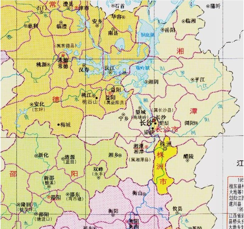 上个世纪50年代湖南政区图,湘潭面积接近5万平方公里