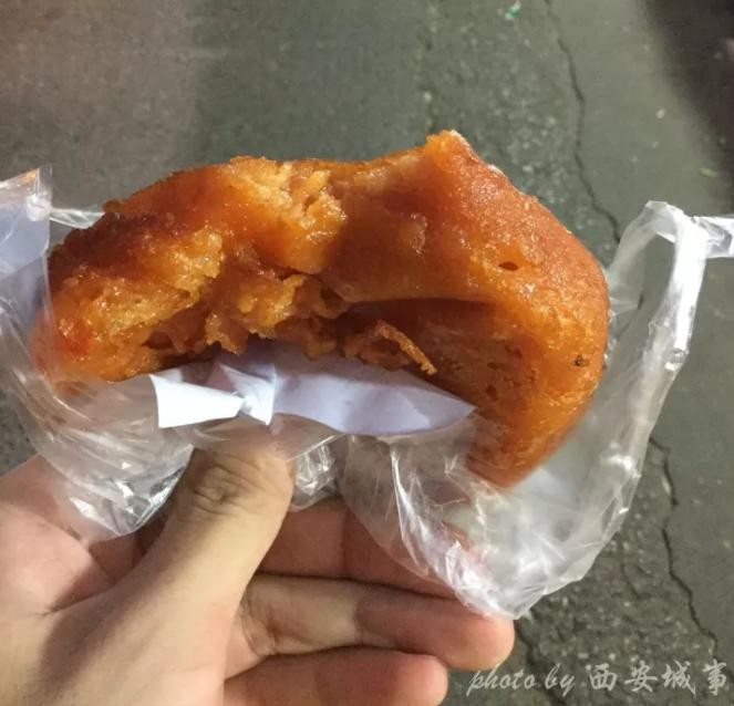 刚走进洒金桥,最显眼的就是回坊刘明柿子糊塌,两块钱一个,买上一个边逛边吃。