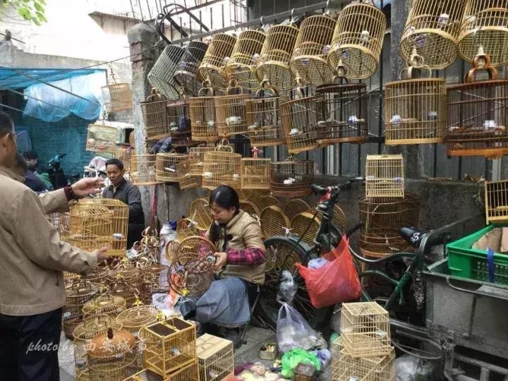 西仓鸟市名气最大,色彩绚丽的鹦鹉,喙黄体黑的八哥,本地特产的秦吉了,咿咿呀呀说着些听不懂的人话。