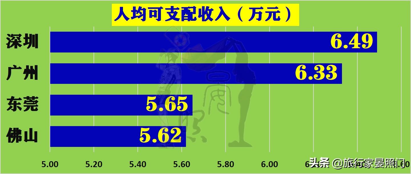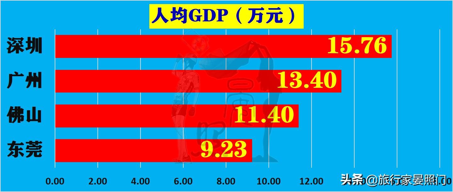 在人均GDP数据上,深圳成为四座城市中唯一越过2万美元发达标准线的,而广州则刚刚达标发达标准,佛山则为深圳的72%,以及广州的85%,而地理区位明显优于佛山,且地处两大一线城市正中间的东莞则仅有9.2万,不仅仅有深圳的58%,而且仅有佛山的81%。