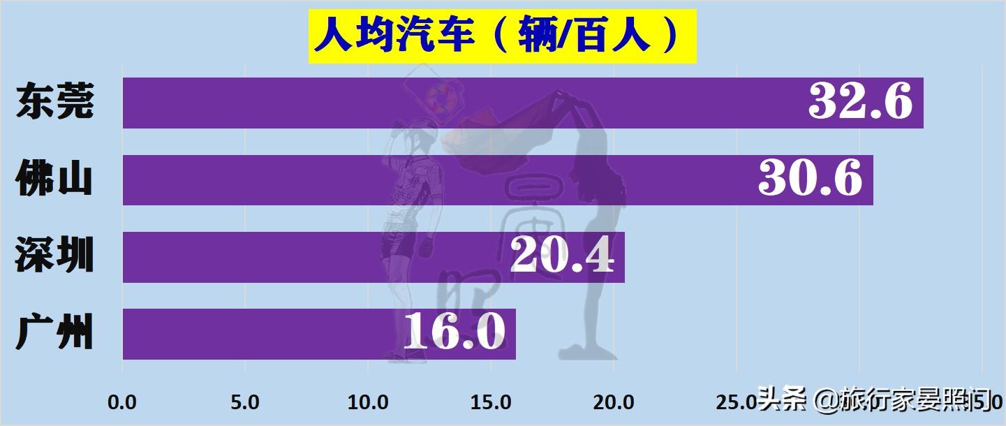 由于众所周知的限牌原因,导致广州、深圳的人均汽车拥有量均比较低,不过广州不及东莞一半依旧还是略显意外,即便是和同为限牌的深圳相比,也仅有其的80%,看来作为广东省会的广州,汽车普及率确实有点偏低。
