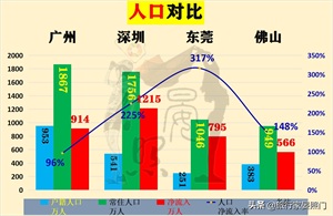 在象征城市经济活力风向标的人口净流入数据上,四大城市不仅全部为流入,而且流入绝对值全部超过500万,尤其是面积最小的深圳,反而流入超1200万,即便是最低的佛山也有566万,除了流入绝对值均居高不下外,在流入率上也是全部高于或逼近100%,东莞甚至达到了317%,也就是说外地人口足足是本地户籍人口的3倍还多。