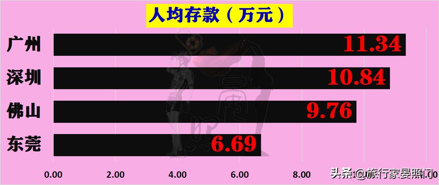 俗话说得好:百姓富不富,全看腰包鼓不鼓。在存款数据上,广州再次力压深圳,登顶广东第一,东莞则不仅只有广州的59%,即便是和佛山相比,也仅有其的61.7%。由此可见,四座城市谁才是真的有钱也就一目了然。