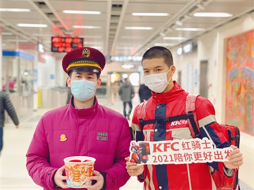 肯德基红骑士载着500份新春城市桶已经在路上,载着美味传递一份感谢,他们也是这座城市的建设者,他们也用自己的力量在这过去的一年中,持续为广大食客配送美味,他们在特殊时期坚持做到无接触安心送,让点单的用户吃的安心吃的放心。