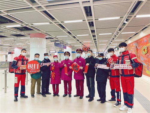 2021年2月3日,武汉轨道交通2号线洪山广场站收到了由楚天都市报极目新闻联合肯德基送出的20份新春城市桶“哇,这也太开心了吧,我最喜欢吃肯德基了。”一位年轻的站务员休息时看到满满一桌子的惊喜,开心地欢呼。