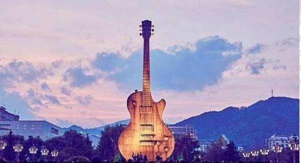 这个大吉他是集安为电影《缝纫机乐队》专门建造的,位于集安市的滨江广场上,电影拍摄之前是没有这个“大吉他”雕塑的,电影结束后,考虑到与当地城市形象不符而被拆除,所以现在去集安的滨江广场是看不到“大吉他”雕塑的。