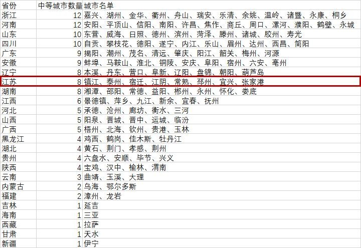 鏍规嵁銆婅祫鏂欍€嬶紝涓瓑鍩庡競鍏?35涓紝鍏朵腑鍘跨骇甯傛湁24涓€?/p>
