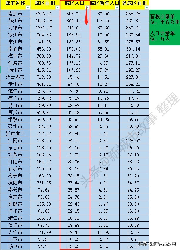 依据新发布的2021年全国城市人口和建设用地,江苏34个城市建设情况,城市君这里把相关数据做了一个归类排列,方便大家参考。数据统计口径请参考官网注释,这里只做学习研究之用。