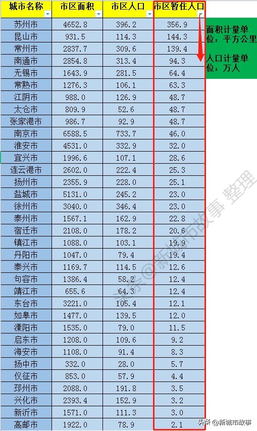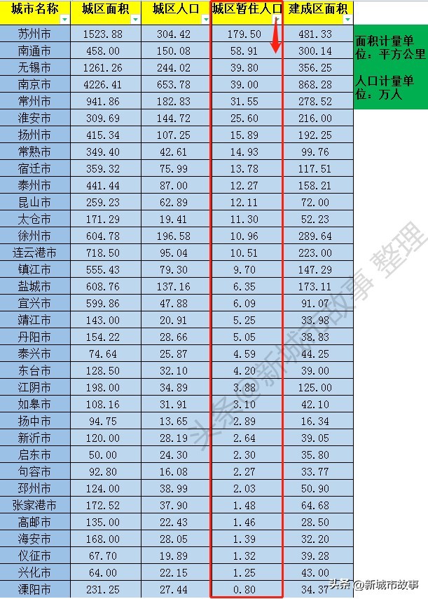 城区暂住人口来看,这个表的排序一出来,是不是感觉眼前一亮,苏州,新贵南通,无锡竟然超过南京,而且苏州作为地级市的扛把子又把兄弟城市甩开2个多身位啊。苏锡常在底下小弟高手如云的包裹下,还能把人吸附过来,着实不容易啊。前有上海,后有南京,夹杂在中间,还有一帮想独立的小弟虎视眈眈,苏南神话不知道能再度续写。