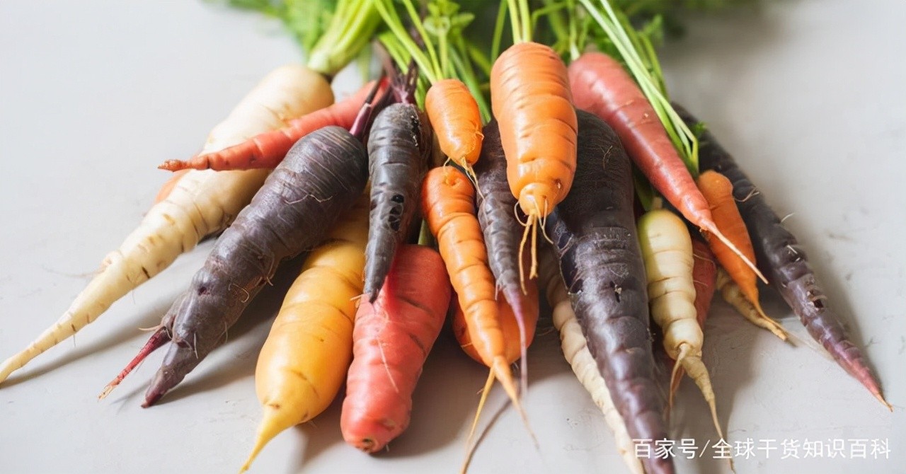 大多数人认为胡萝卜是橙色的,但根据著名杂志《健康在线》的说法,胡萝卜最初是紫色或白色的,早在10世纪波斯帝国就用它作为食物。我们今天吃的橙色胡萝卜是基因突变。今天你可以在市场上买到不同颜色的胡萝卜或萝卜,它们的营养及其丰富。