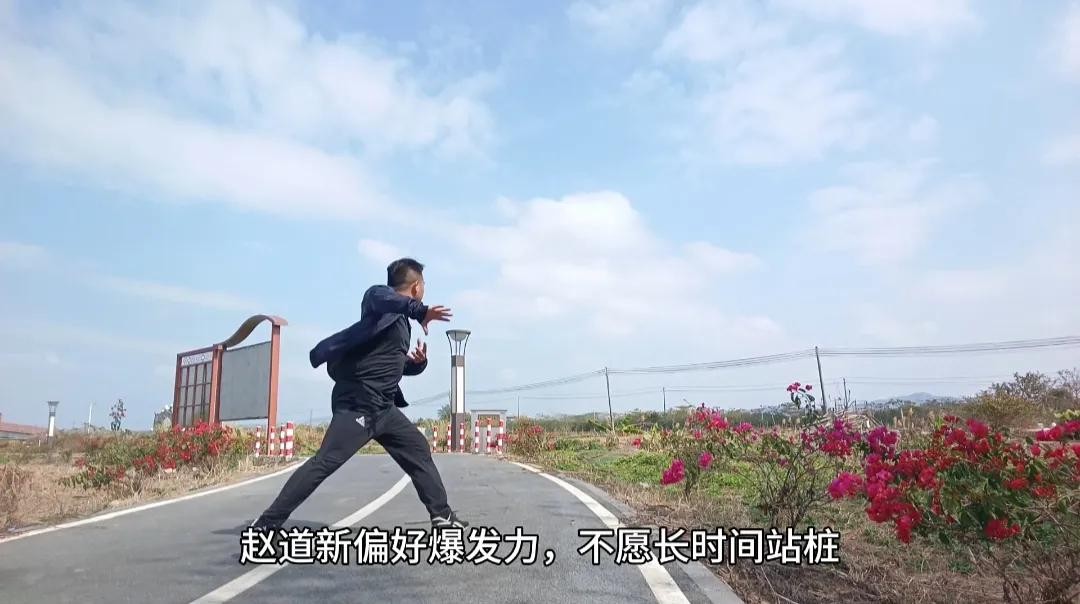 赵道新尊崇张占魁和吴翼晖等前辈,有自己独特的武学理念和追求,赵道新偏好爆发力,不愿长时间站桩,更倾向于抖大杆等练法。
