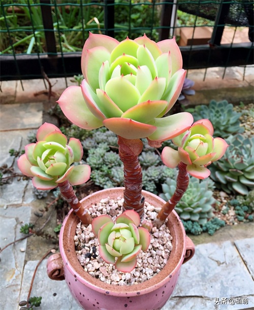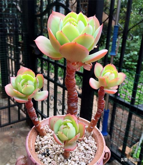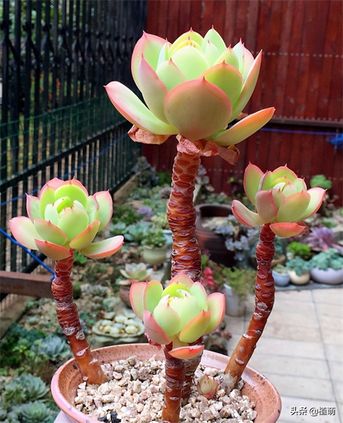 露养的优势,就是室外通风透气,不用担心积水。光照充足均匀,不需要经常转动花盆。当然,露养也有劣势,就是把小动物祸害,特别是在春季,如果露养碧桃等多肉,需要做好防鸟措施,否则碧桃会残缺不整。