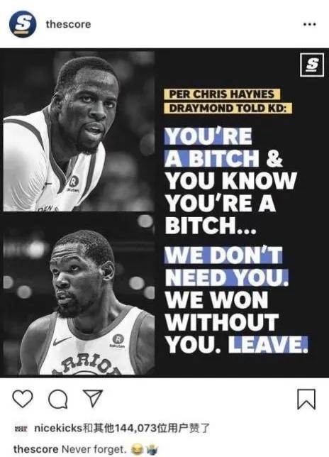 作为老牌的冠军班底,格林本来就不满杜兰特在勇士队内的地位,加上比赛时候杜兰特狂怼格林,格林就说出了那句,没你我们一样赢。