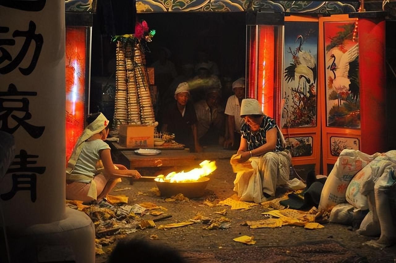 结束后撒纸钱于空中,留给孤魂作资糜粥,烧毕不可回望,维系两界平衡。不可着红衣烧纸,免引争夺。丧家不宜烧过多,引来他人觊觎。