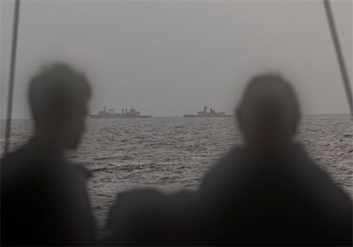 从远方尾行偷窥我人民海军舰队的澳军水兵